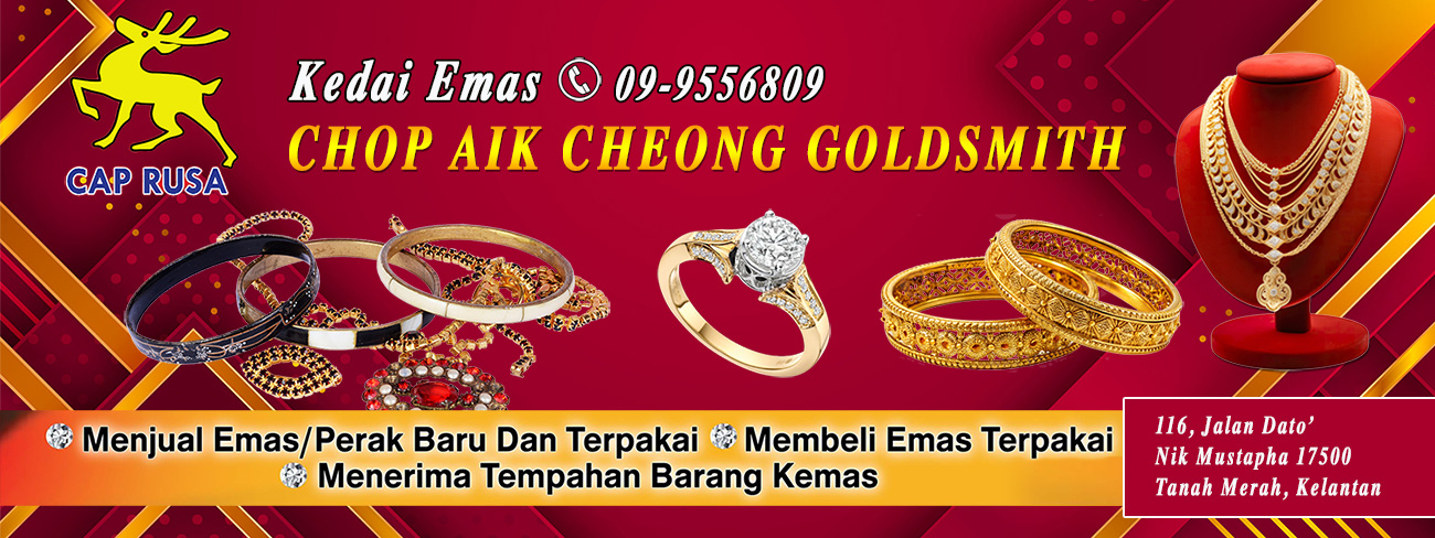 KEDAI EMAS CAP RUSA TANAH MERAH KELANTAN Kami menjual emas, menerima tempahan emas, trade in, membeli emas terpakai, membaiki, mencuci dan mencelup emas..